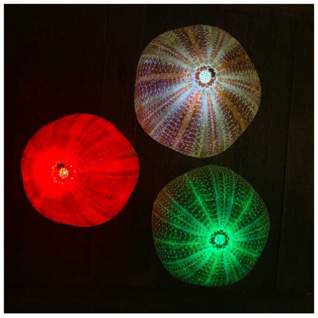 Kråkebollene er unike på hver sin måte både i størrelse og farger. De er hentet opp av dykkeren selv i Lofoten, sendt til Lørenskog der de blir klargjort for å bli de mest fantastiske lykter.
