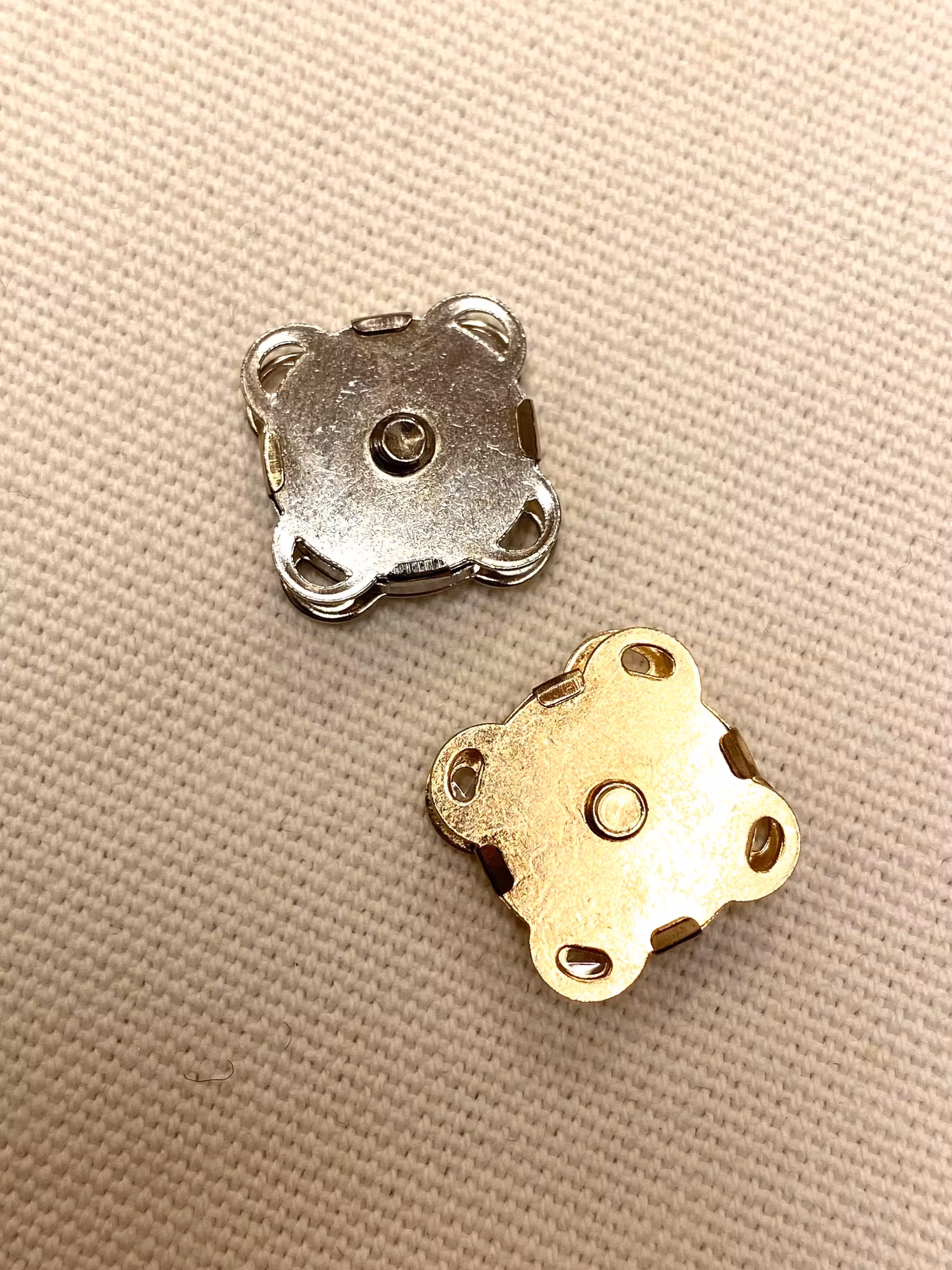 Magnetlås liten (gull/sølv) 30,- 23,- Farge Gull Sølv På lager. Legg i handlekurv Produktbeskrivning Magnetlås til dine plagg, vesker o.l.Str: 1,5cm i diameter Farge: Gull eller sølv